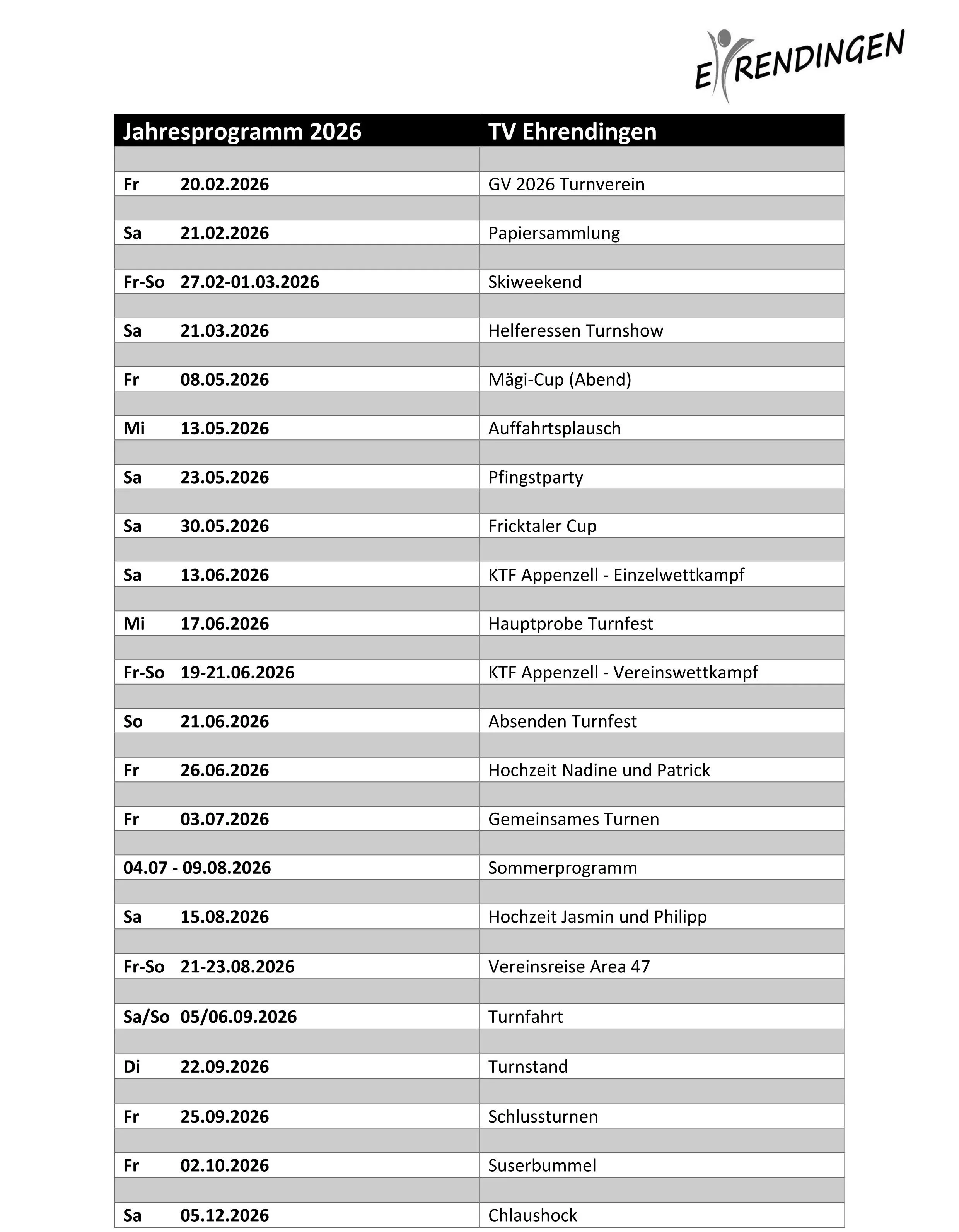 Klicken Sie auf den gewünschten Verein, um direkt zum Jahresprogramm zu gelangen.